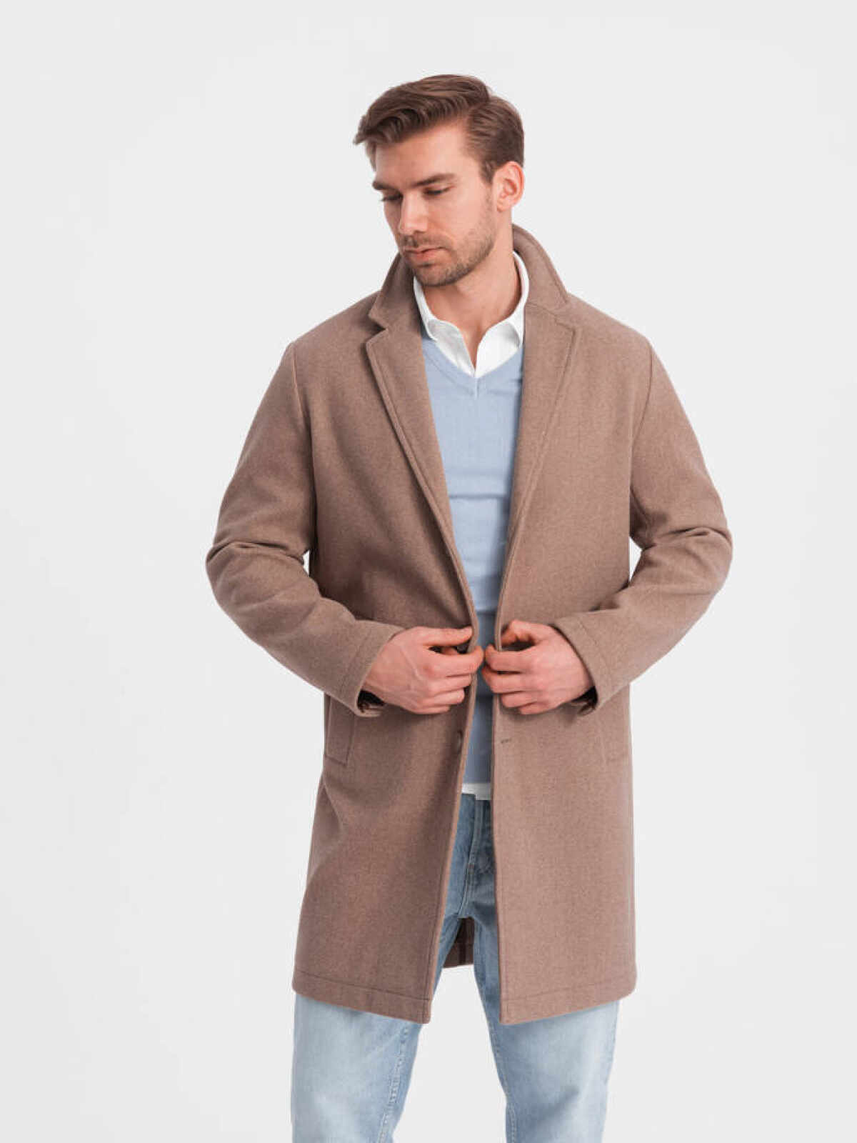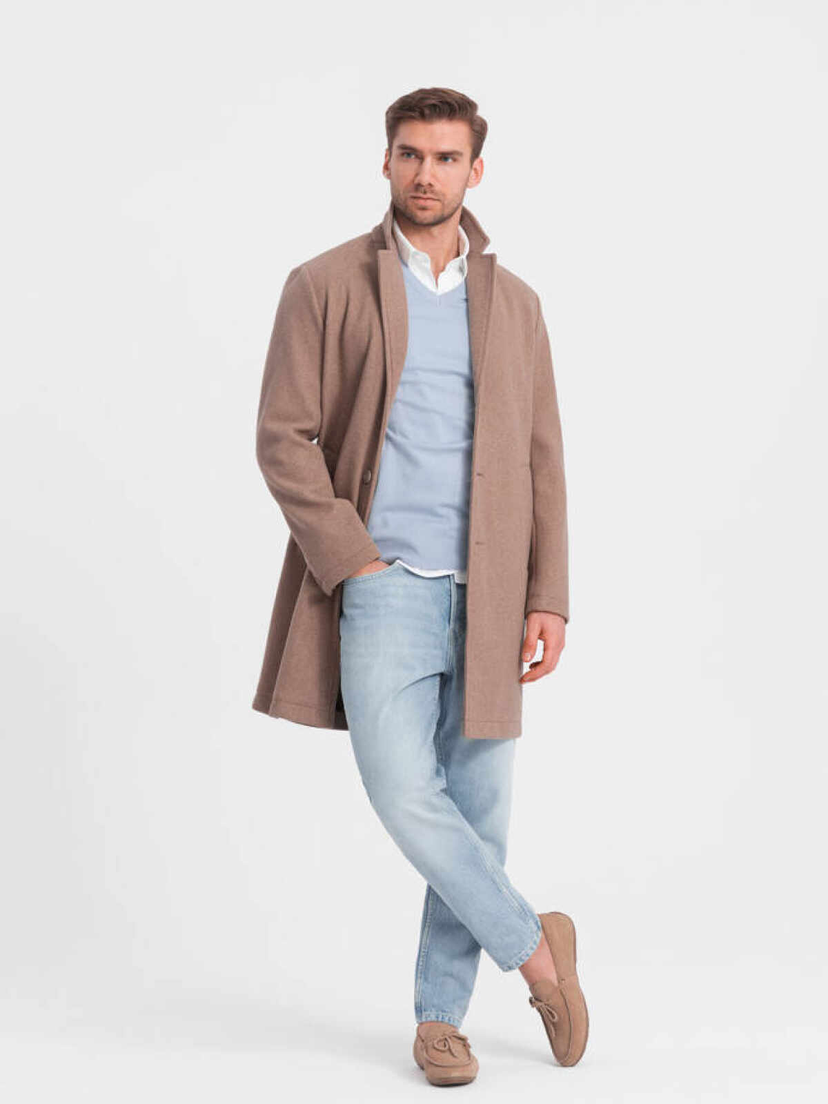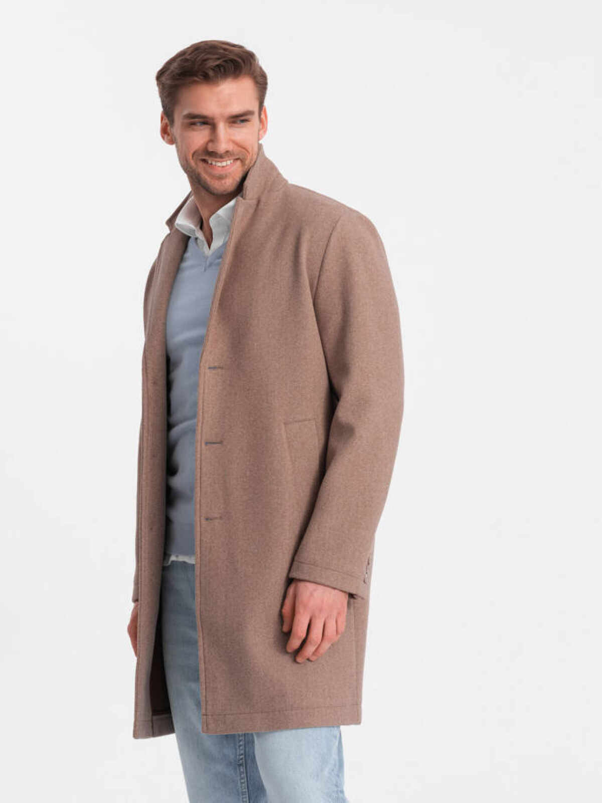 Stijlvolle mantel heren koop je online bij Italian Style. ✓ Moda Italia ✓ Modieuze beige manteljas heren ✓ Kwaliteit ✓ Dagelijkse verzending