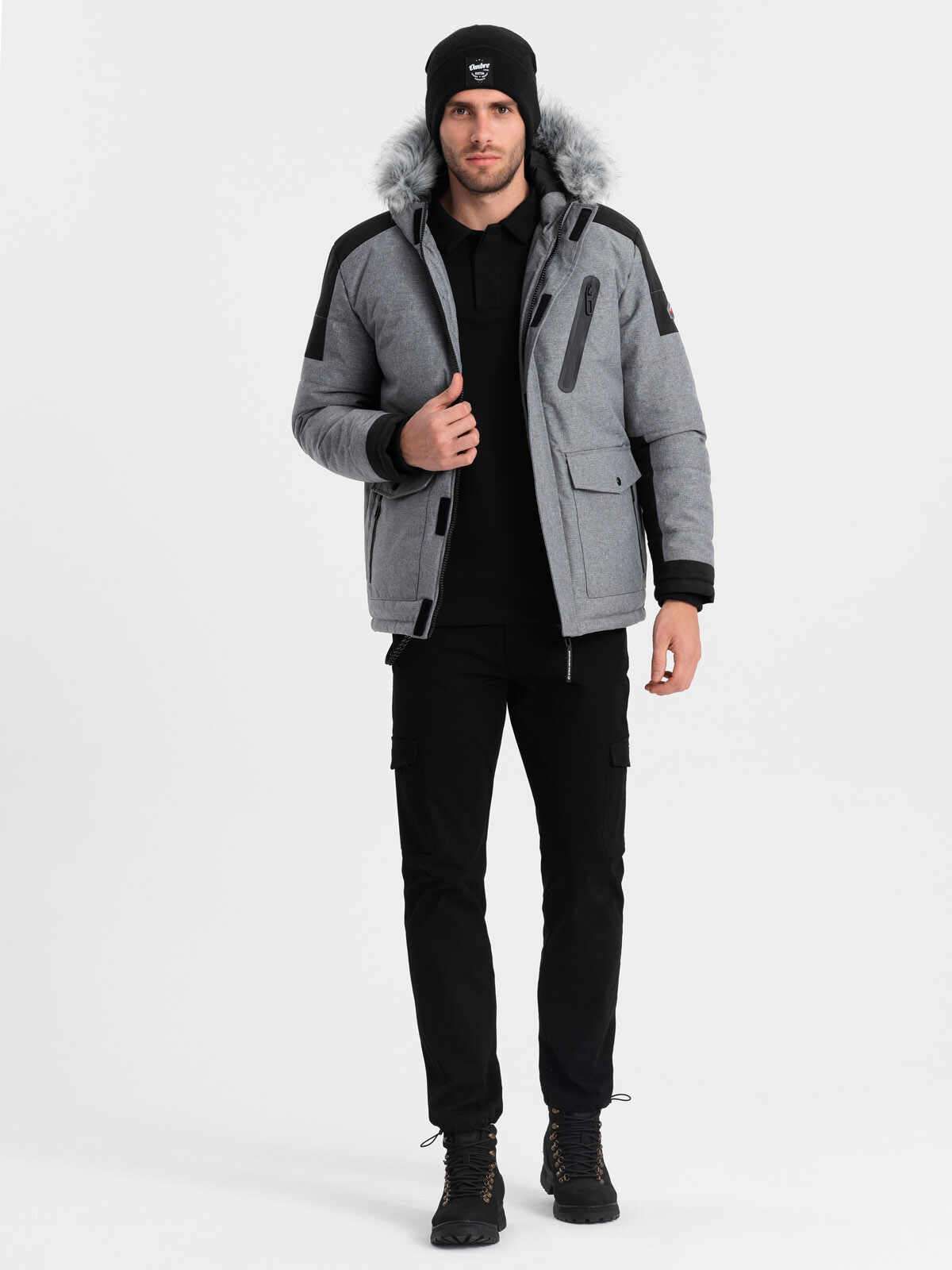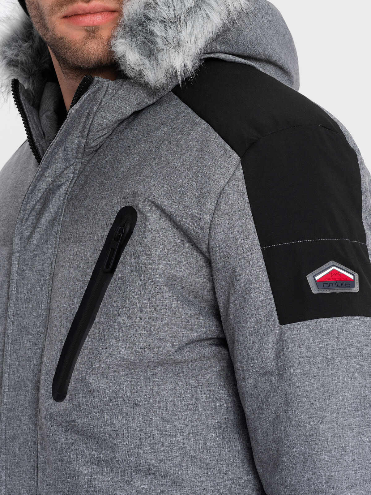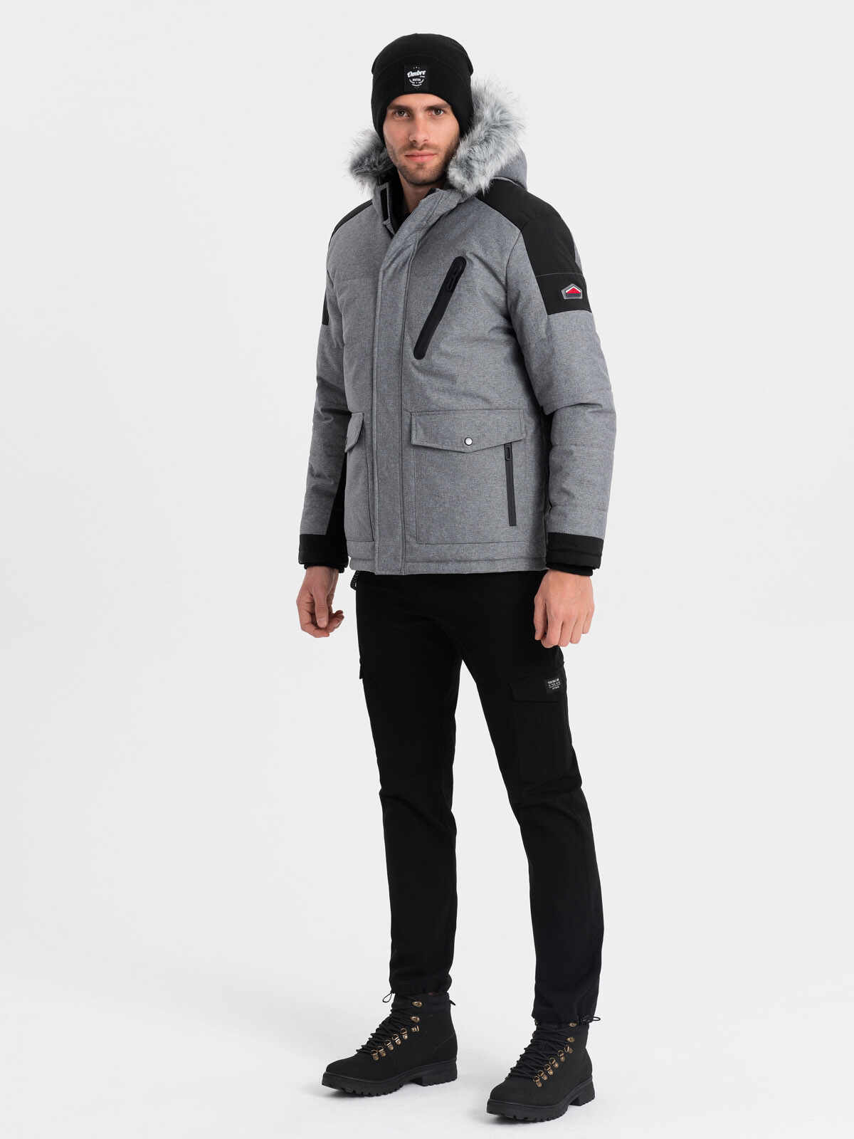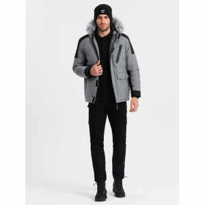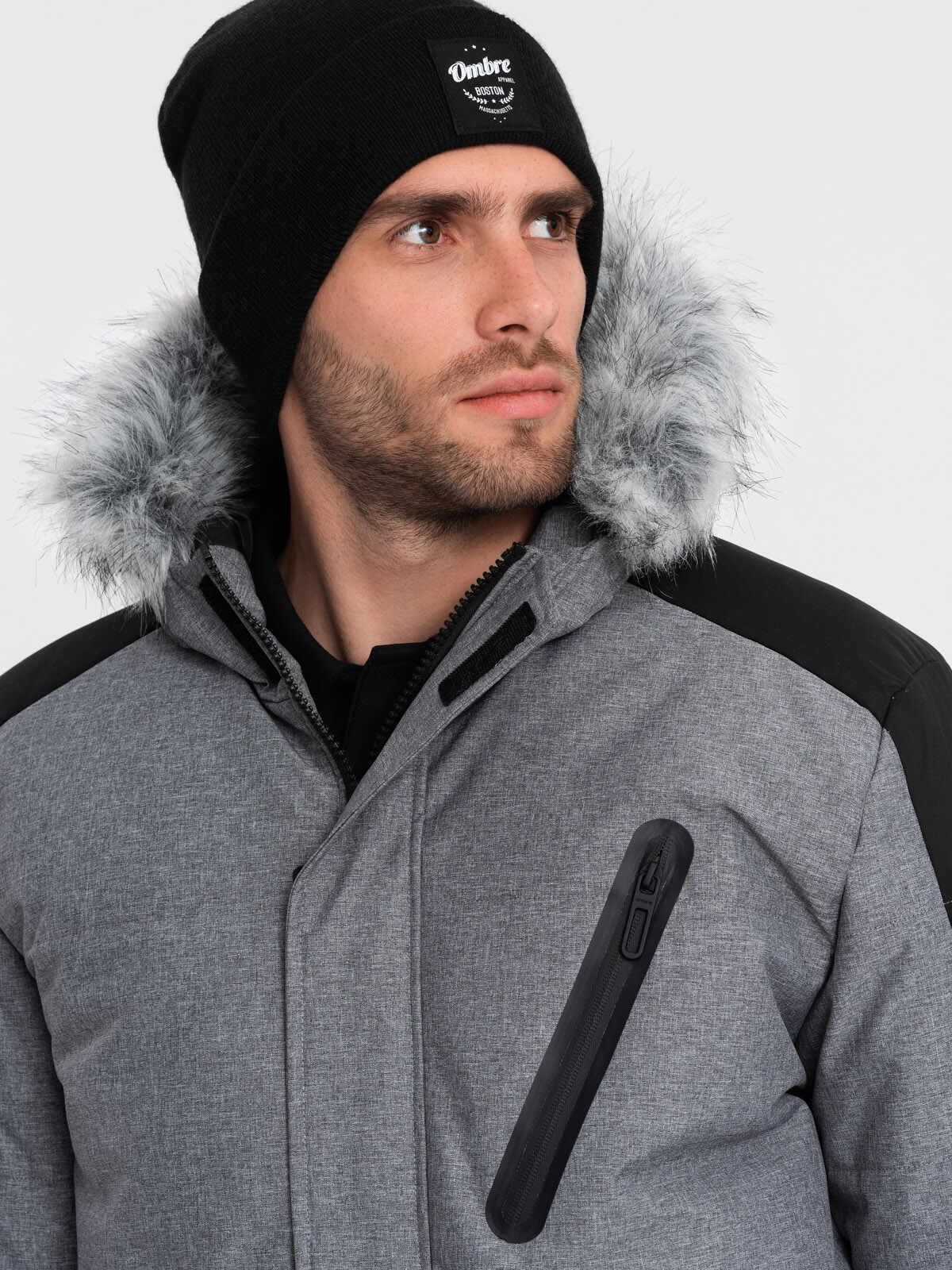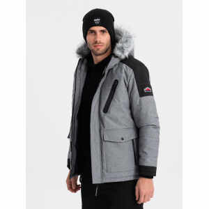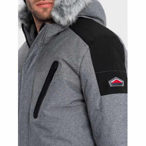 Stoere heren winterjas van het Style Italy merk Ombre. Deze winterjas heren parka grijs bontkraag is ideaal te gebruiken voor de koudere seizoenen zoals herfst en winter. De parka voor heren is voorzien van meerdere steekzakken met ritsen.