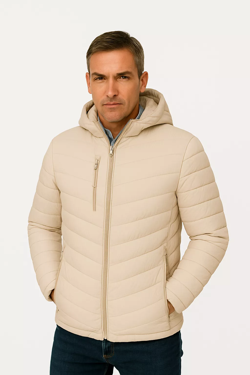Stijlvolle lichtgewicht pufferjas met afneembare capuchon, ideaal voor de herfst en winter. Dankzij de slim fit pasvorm sluit de jas mooi aan en blijft hij toch comfortabel zitten. De jas is volledig gemaakt van 100% polyester, waardoor hij warm, duurzaam en makkelijk in onderhoud is.