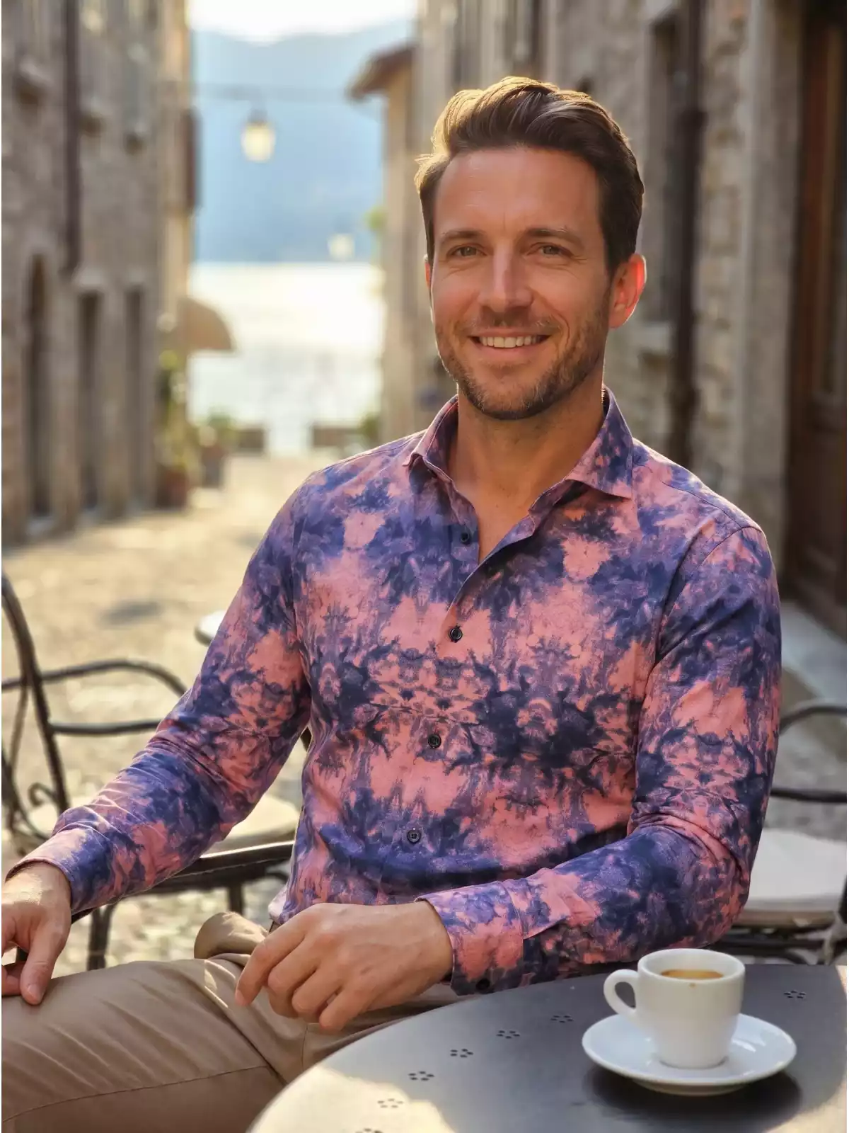 Luxe aanvoelend heren overhemd met klassieke kraag van het Moda Italia Italia merk Napoli Uomo. Dit Italian Fashion overhemd met kwaliteitsstof is voorzien van een all-over-print en heeft een regular pasvorm.
