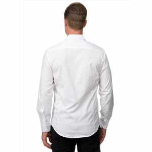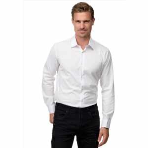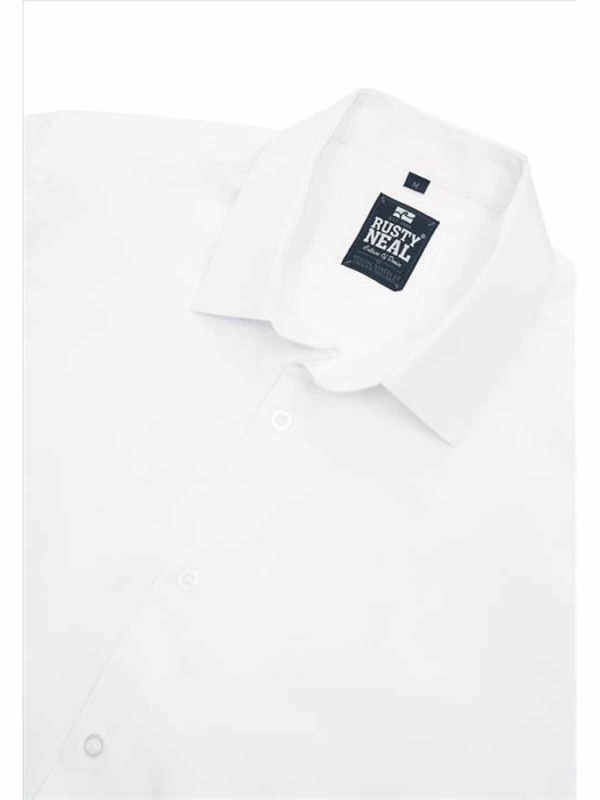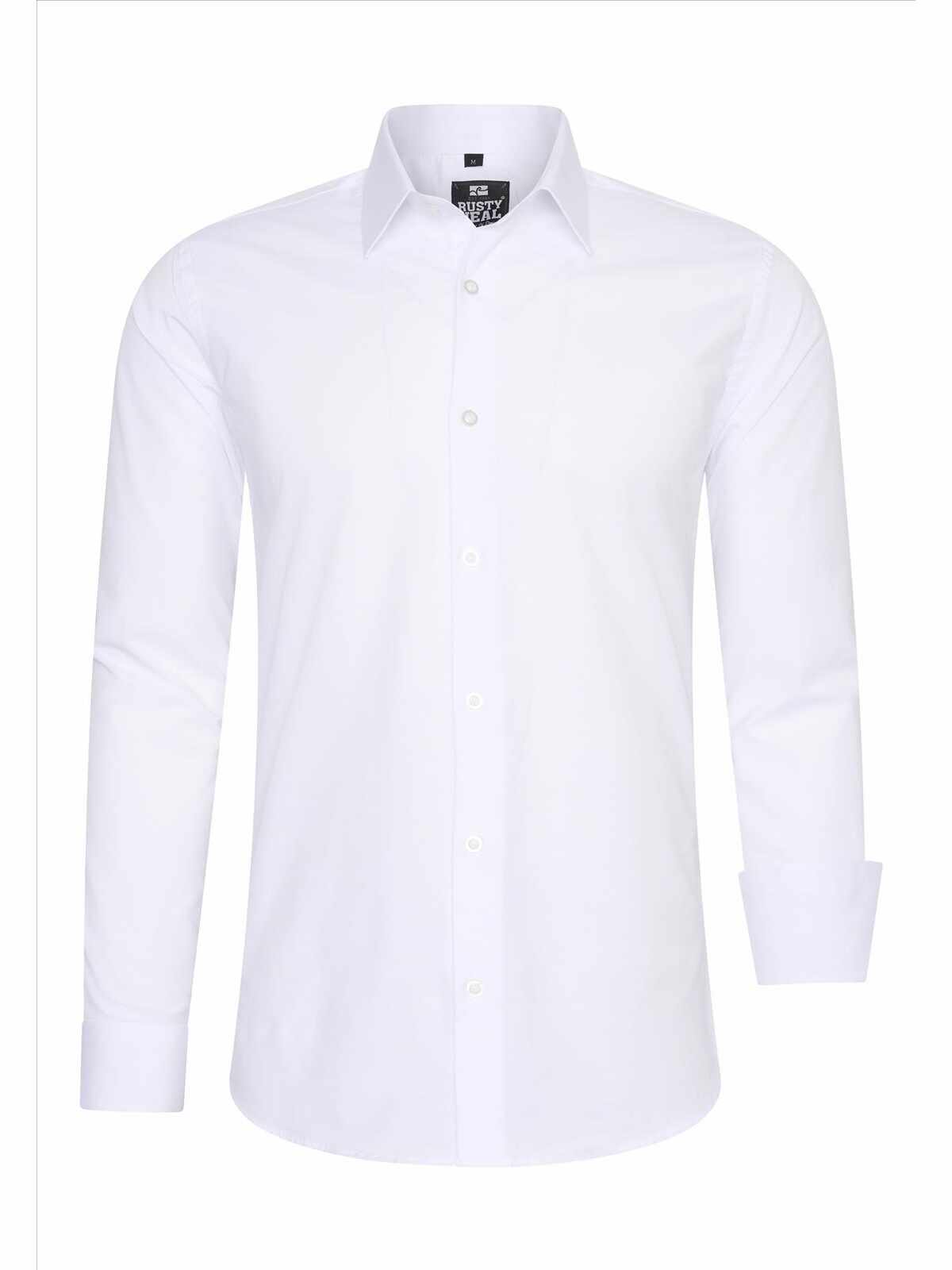 Wit effen heren overhemd van Rusty Neal. Deze nette slim fit overhemden hebben een zakelijke uitstraling, maar zijn ook zeer geschikt als vrijetijdskleding. Het basic overhemd voor mannen heeft een smalle pasvorm en valt dus klein uit. Bij twijfel adviseren wij u een maatje groter te bestellen. Het overhemd is voorzien van een witte binnenboord. Ook is de binnenkant van de manchet wit van kleur. Tevens zijn de knopen van de blouse transparant.