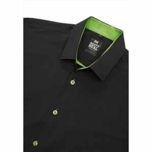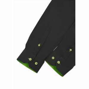 Dit nette slim-fit overhemd heeft een zakelijke, maar toch moderne uitstraling. De effen zwarte kleur wordt stijlvol geaccentueerd door een groene kraag en bijpassende groene knopen, wat zorgt voor een subtiele, unieke touch. Dit overhemd is niet alleen perfect voor formele gelegenheden en zakelijke settings, maar ook zeer geschikt voor vrijetijdskleding. Dankzij de comfortabele stretchstof en de aansluitende pasvorm draagt het heerlijk, of je het nu combineert met een chino voor een nette look of een jeans voor een casual outfit.
