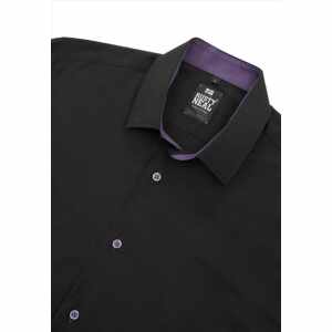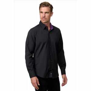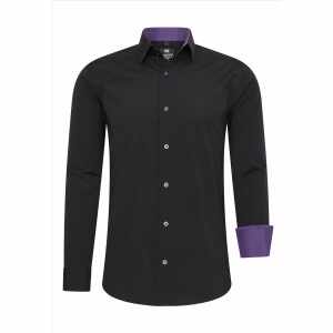 Dit zwarte slim-fit overhemd combineert een klassieke look met een opvallend detail. De lila kraag en lila knopen zorgen voor een uniek contrast, waardoor het overhemd zowel zakelijk als modieus oogt. Dankzij de aansluitende pasvorm sluit het mooi aan en biedt het een comfortabele en stijlvolle uitstraling. Draag het met een chino voor een elegante look of combineer het met een jeans voor een meer casual outfit.