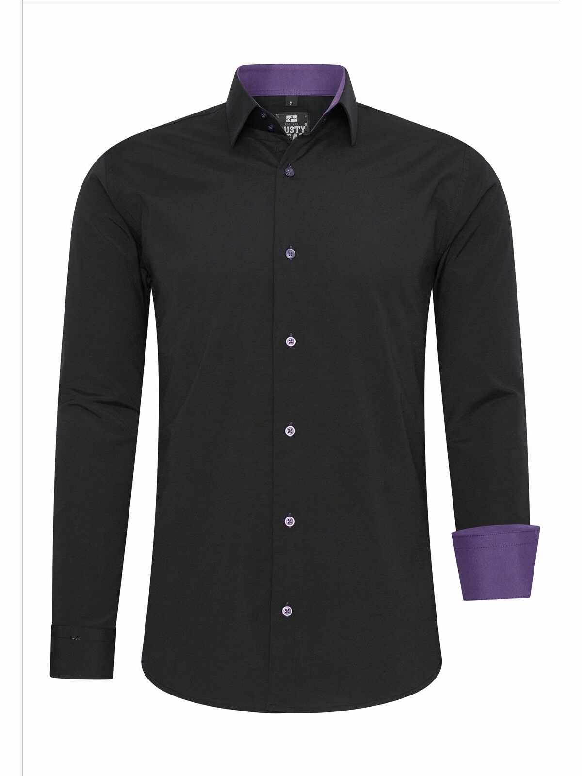 Slim-fit overhemd – Zwart met lila details
