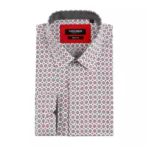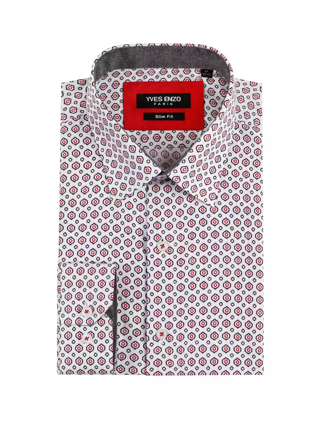 YVES ENZO – Slim Fit Overhemd met print – Rood met Wit