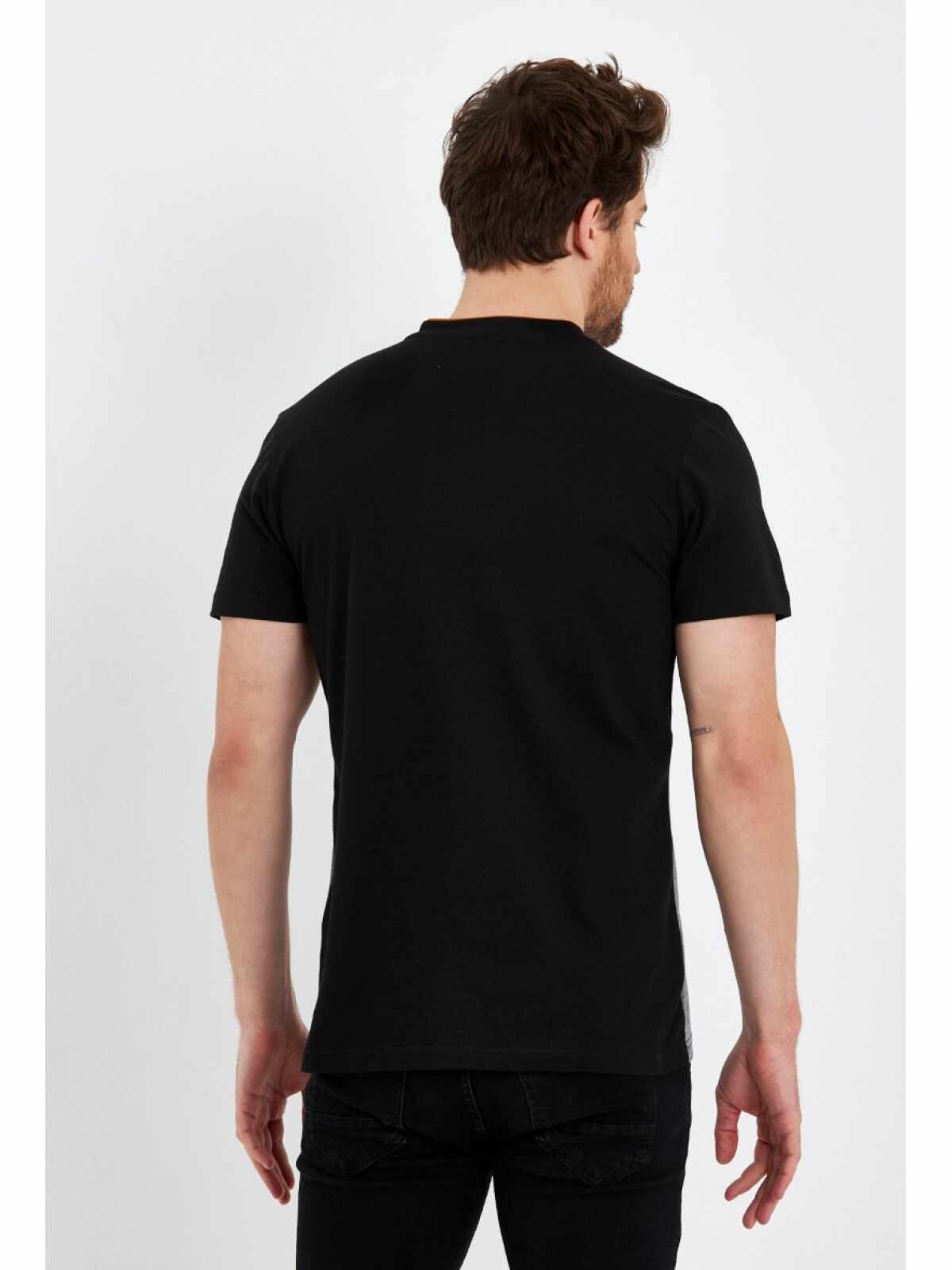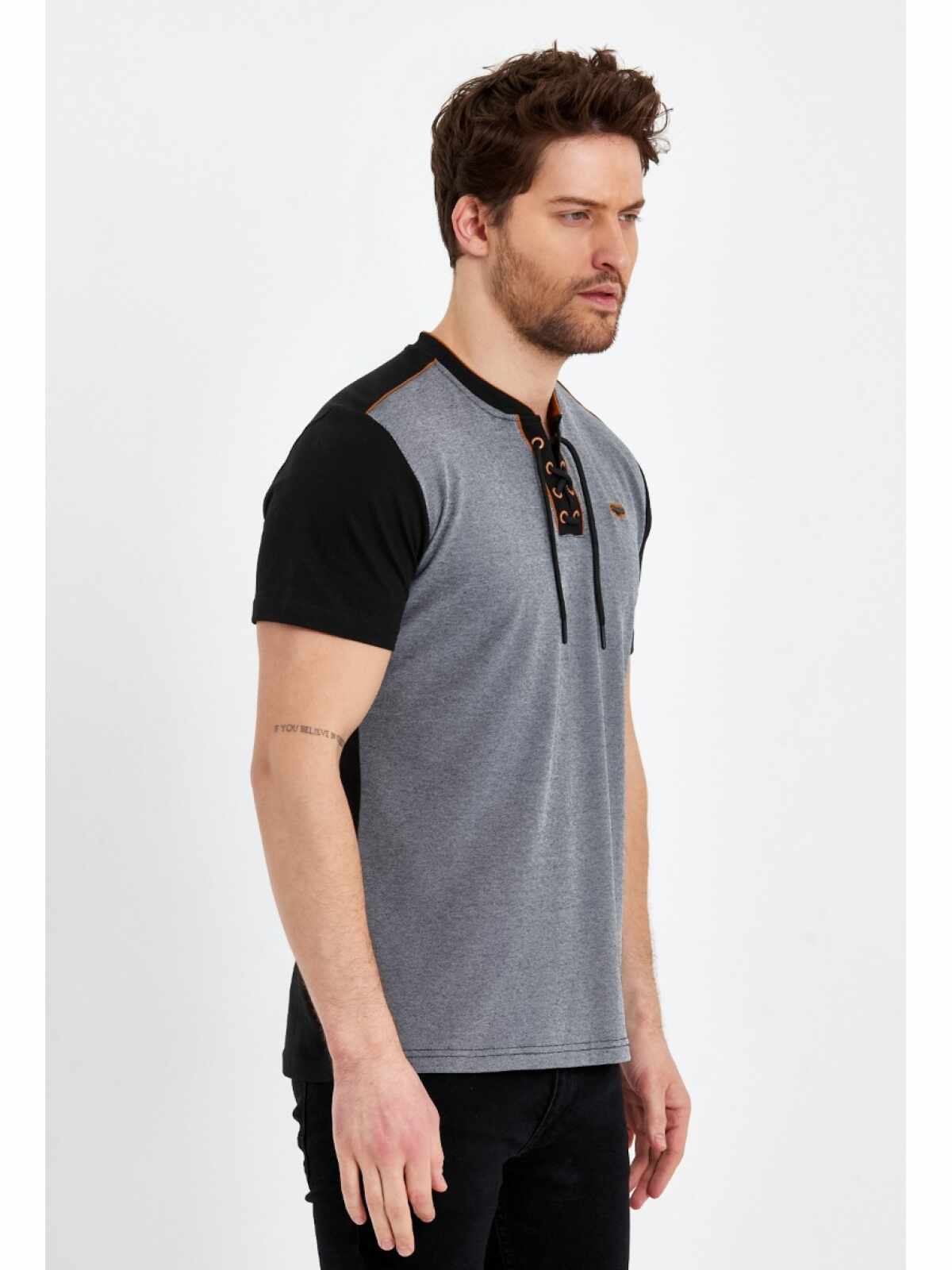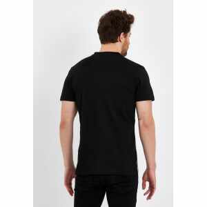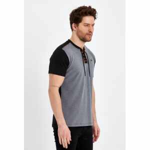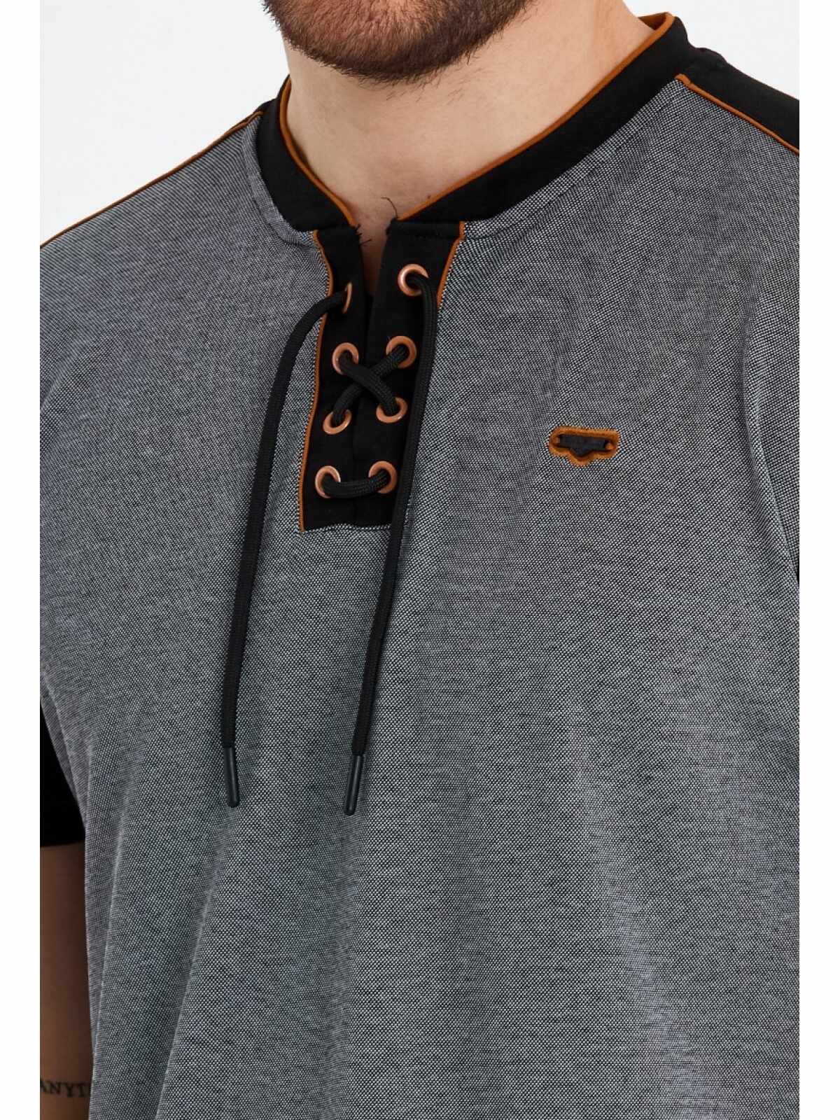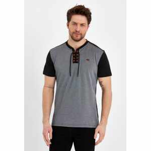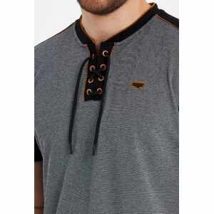 Het stoere design met halskoordjes en subtiele stijlvolle details geven dit T-shirt een trendy uitstraling. De klassieke zwarte kleur maakt het een veelzijdig item dat moeiteloos gecombineerd kan worden met een jeans of chino voor een casual en modieuze look.