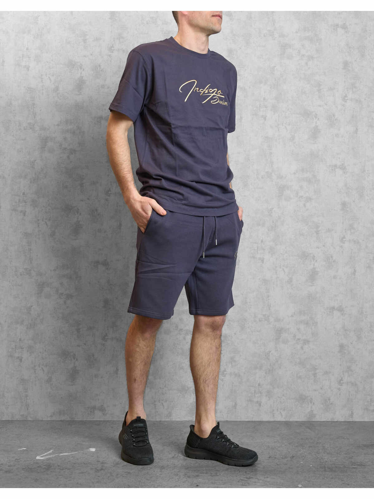 Ga voor stijl en comfort met deze Indigo Denim heren jogging set. Deze twee-delige set bestaat uit een T-shirt en een korte joggingbroek met een normale pasvorm, ideaal voor sportieve en casual gelegenheden.