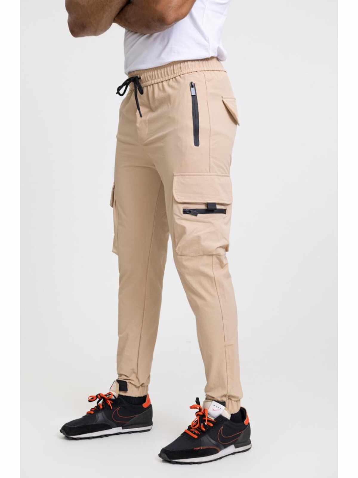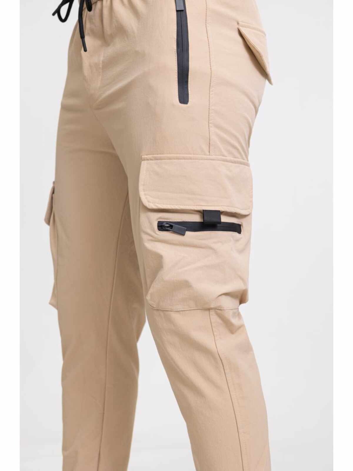 Zayne Milano – Heren Joggingbroek – Zakken Op De Zijkant Met Rits – Beige – Stijlvol – Art.nr. TX-810-3