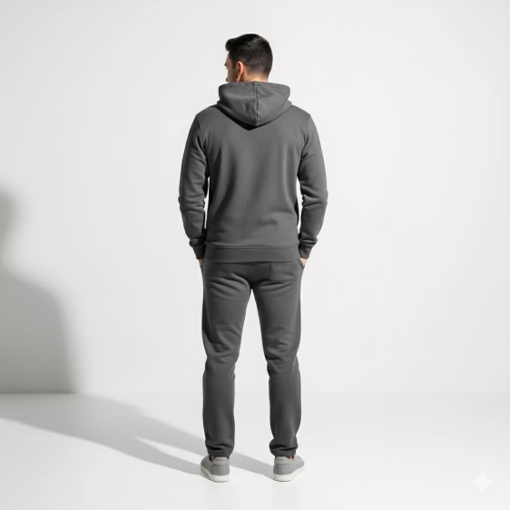 De verstelbare tailleband zorgen voor een fijne fit, terwijl de steekzakken voldoende ruimte bieden voor je essentials. De capuchon geeft dit joggingpak een sportieve en moderne uitstraling. Ideaal voor fitness, wandelen, of relaxen in huis.