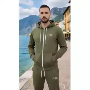 Dit Indigo Denim heren joggingpak in stoer Kaki met rits is de perfecte keuze voor zowel sportieve als casual dagen. Dankzij de 65% katoen en 35% polyester mix, voelt de stof heerlijk zacht aan en biedt het een comfortabele pasvorm.