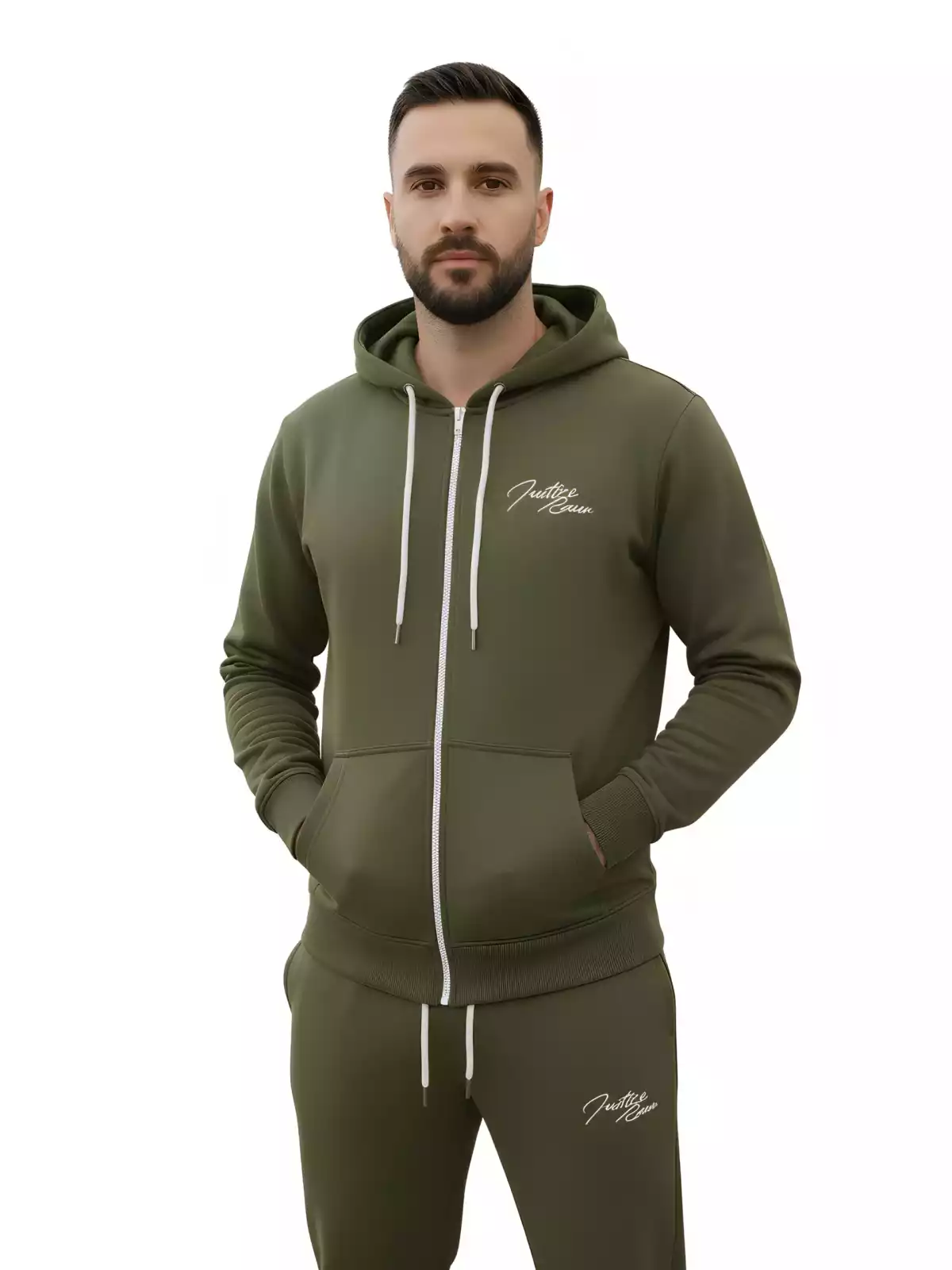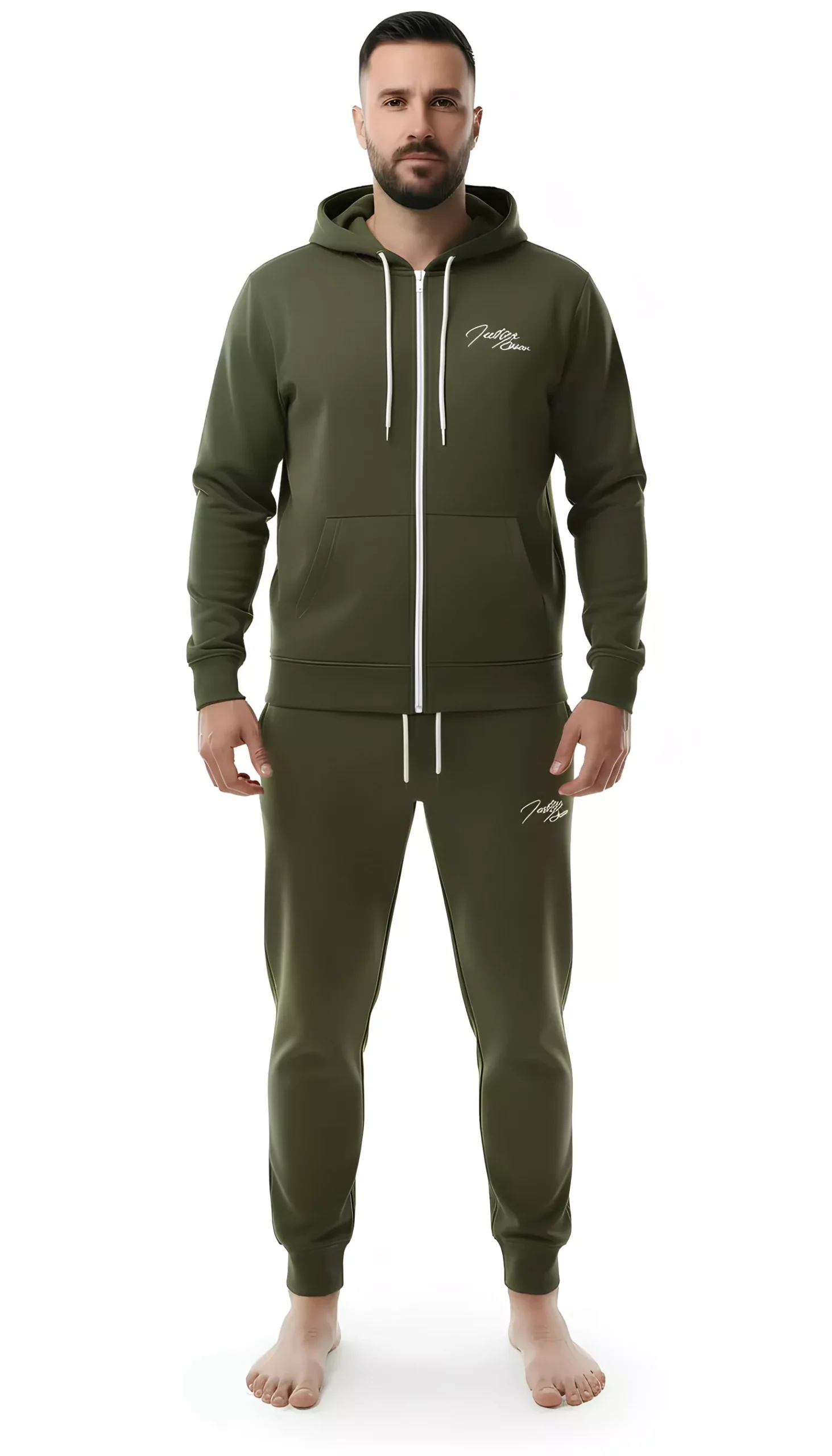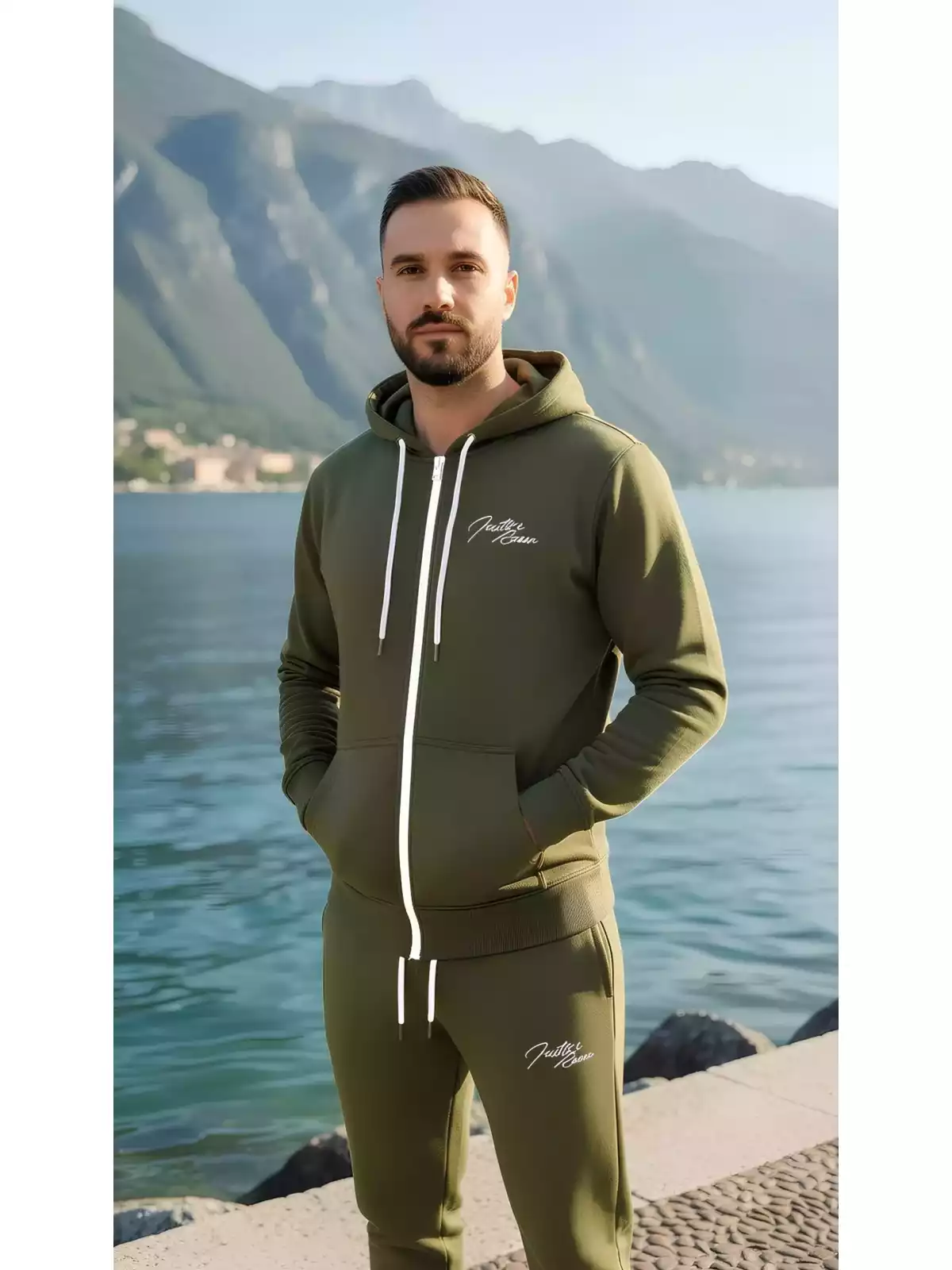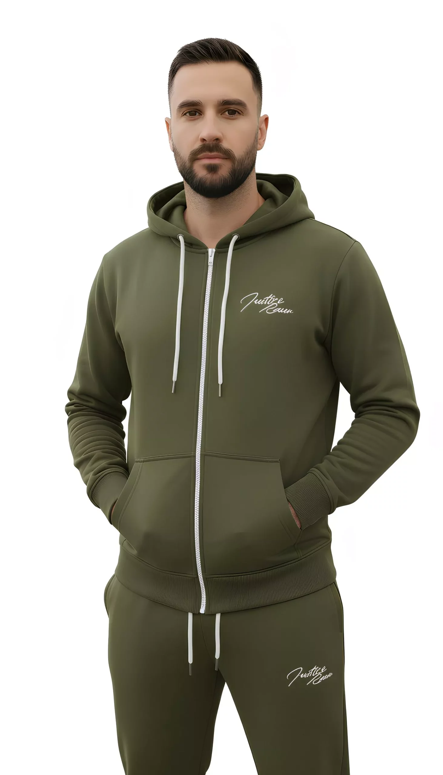 De verstelbare tailleband zorgen voor een fijne fit, terwijl de steekzakken voldoende ruimte bieden voor je essentials. De capuchon geeft dit joggingpak een sportieve en moderne uitstraling. Ideaal voor fitness, wandelen, of relaxen in huis.