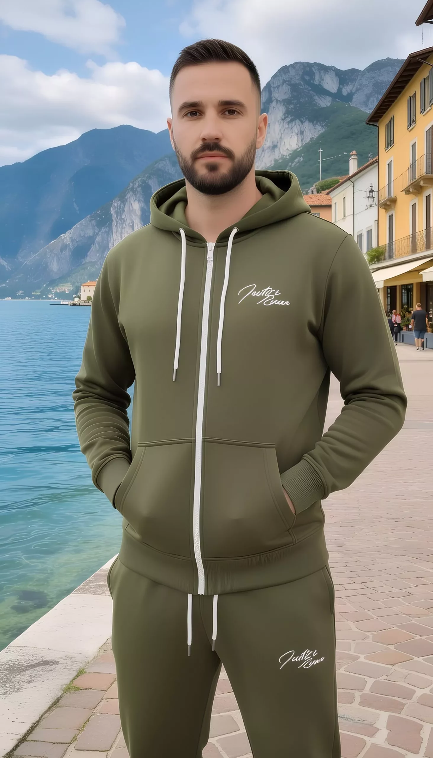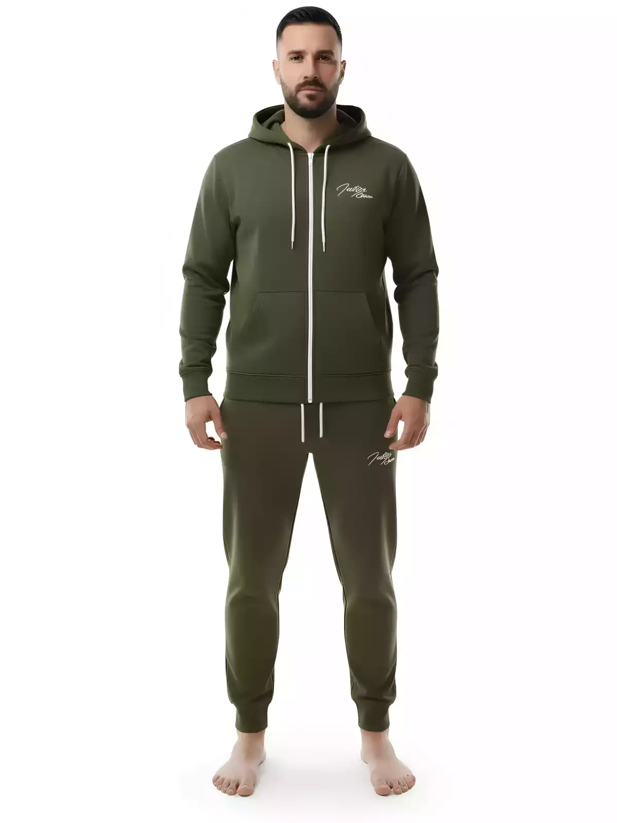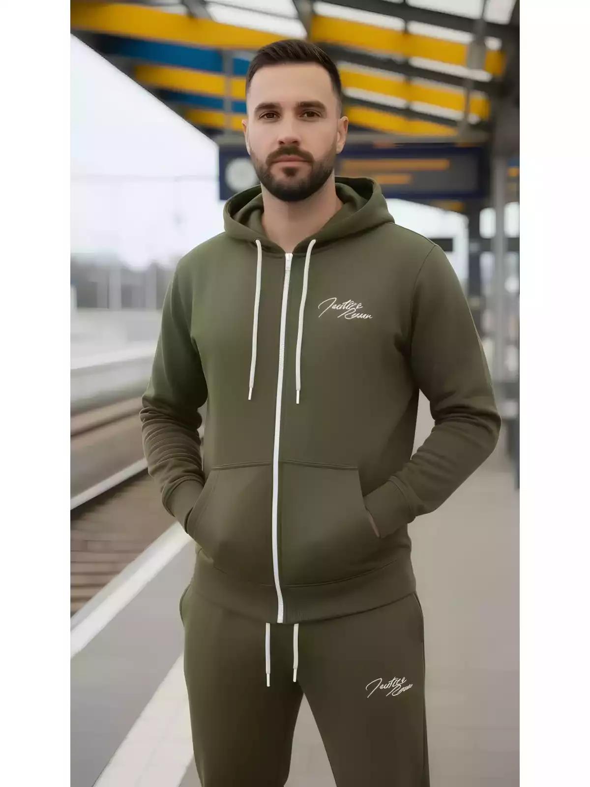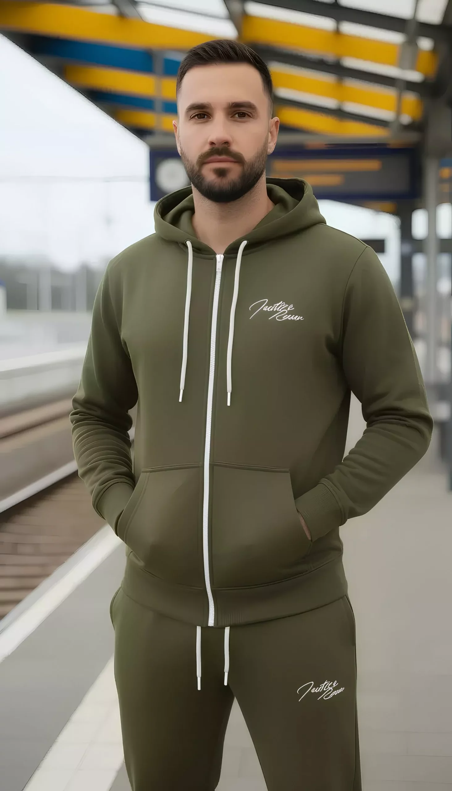 De verstelbare tailleband zorgen voor een fijne fit, terwijl de steekzakken voldoende ruimte bieden voor je essentials. De capuchon geeft dit joggingpak een sportieve en moderne uitstraling. Ideaal voor fitness, wandelen, of relaxen in huis.