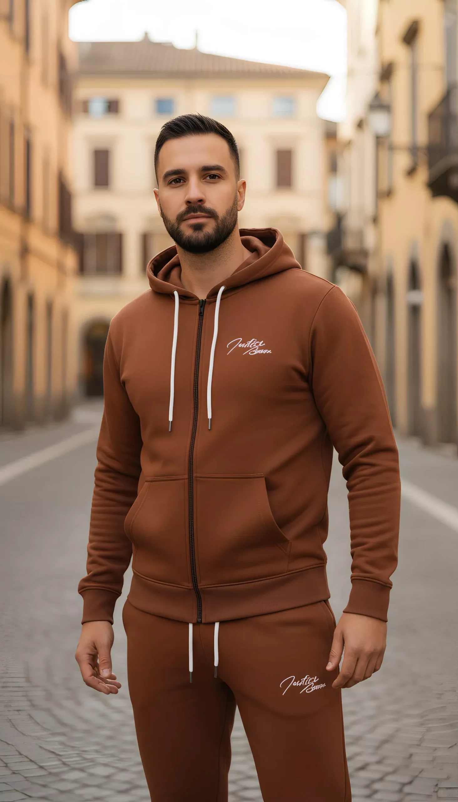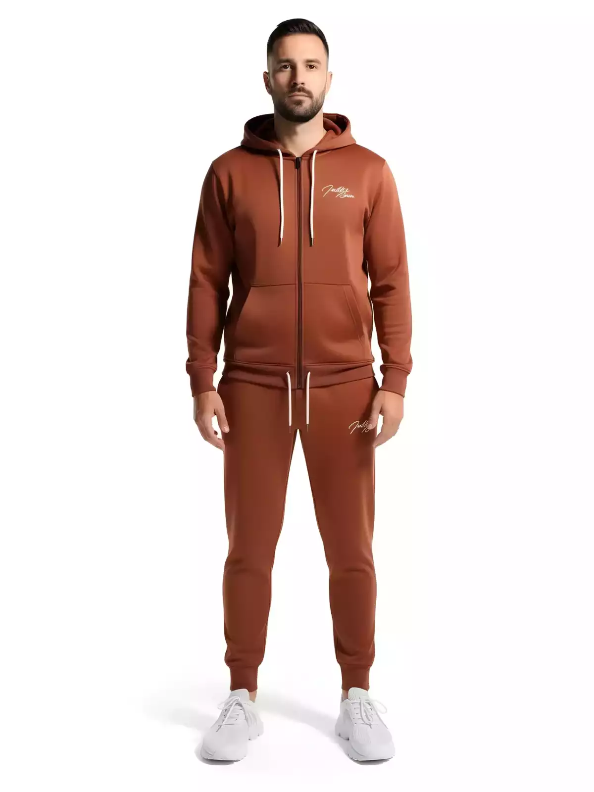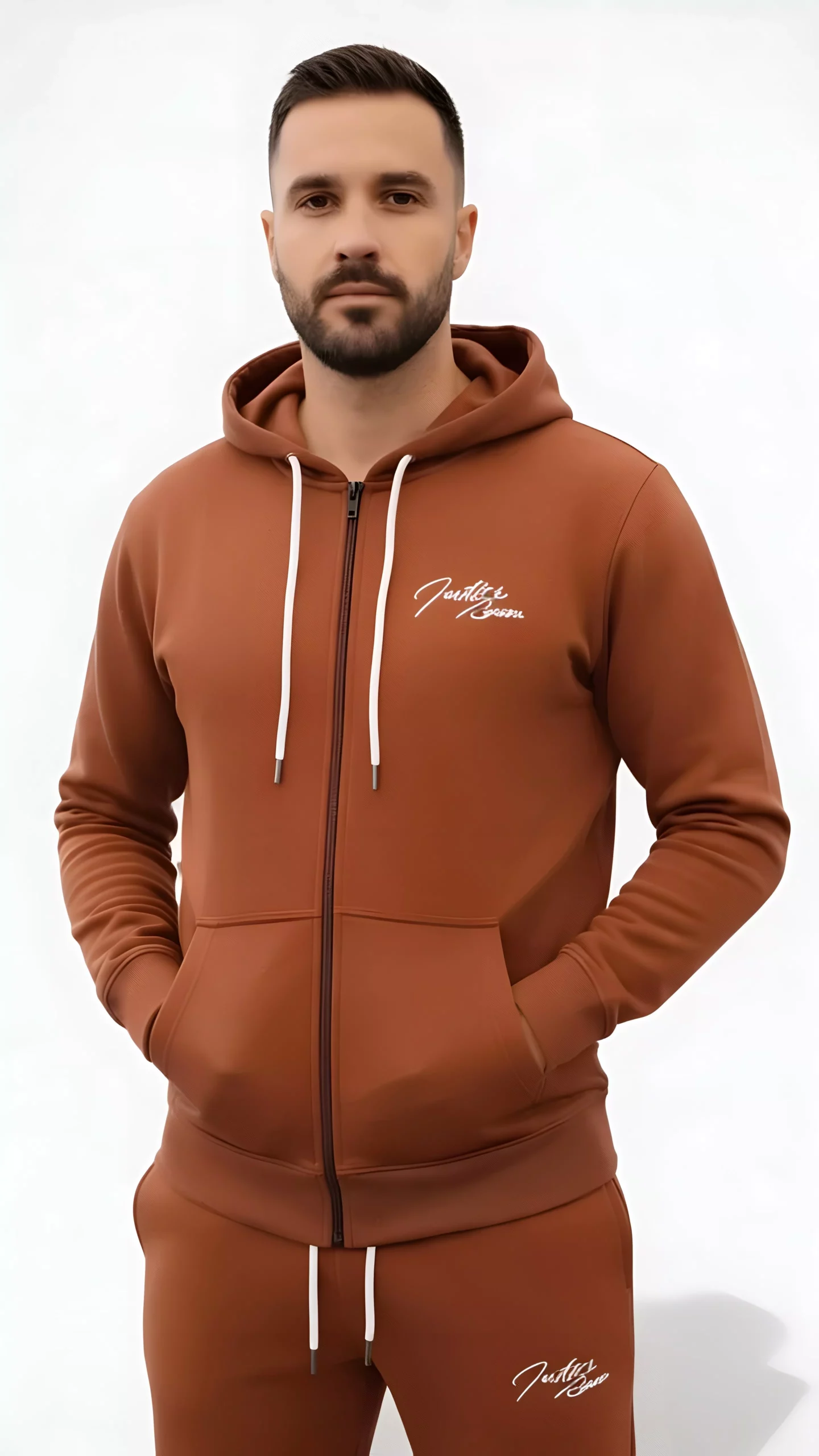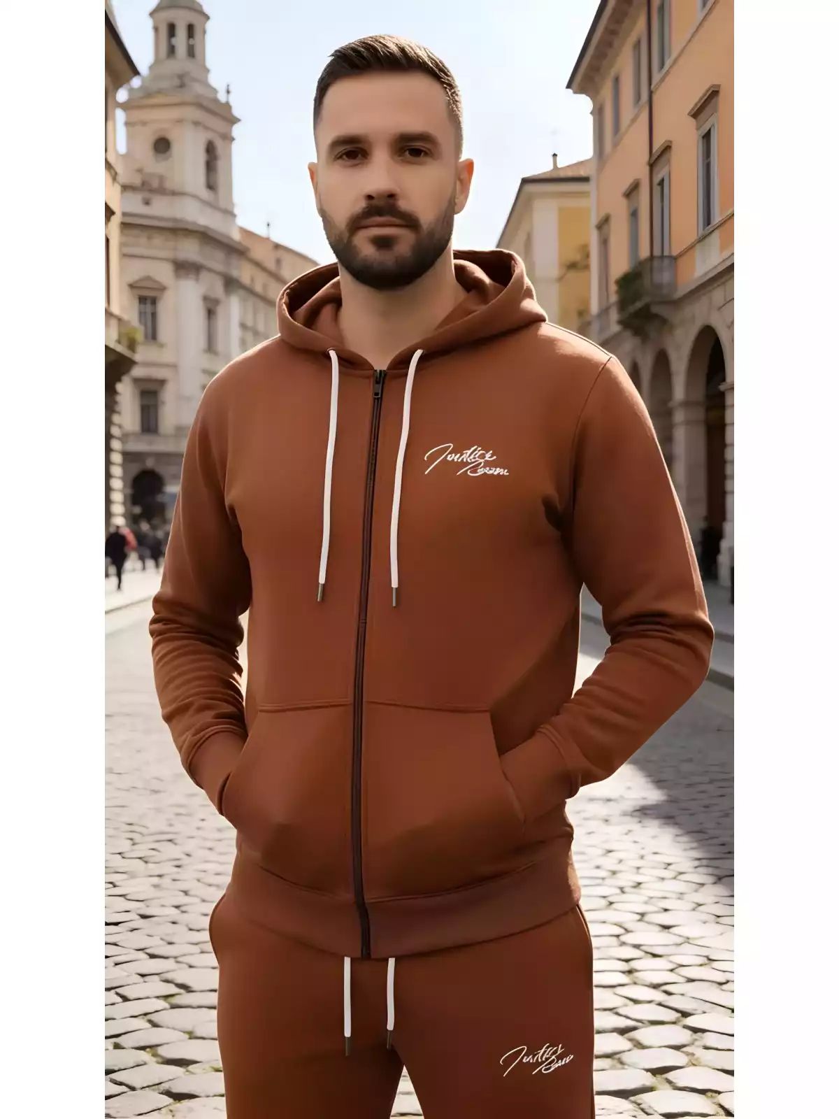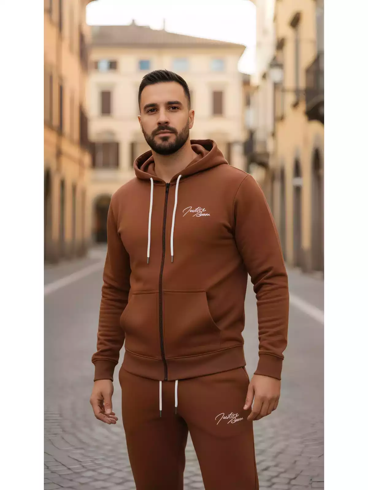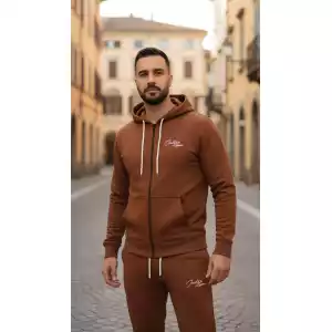 Dit Indigo Denim heren joggingpak in stoer Roodbruin met rits is de perfecte keuze voor zowel sportieve als casual dagen. Dankzij de 65% katoen en 35% polyester mix, voelt de stof heerlijk zacht aan en biedt het een comfortabele pasvorm.