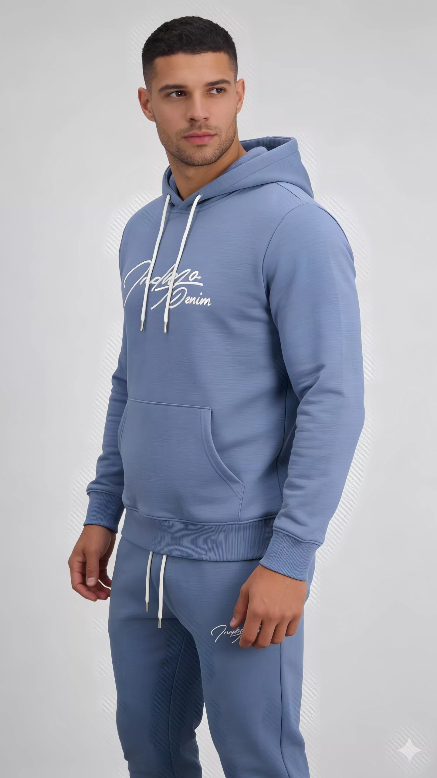 Of je nu kiest voor een actieve dag of ontspanning, dit Indigo Denim joggingpak biedt de perfecte balans tussen stijl en comfort. Bestel nu en ervaar het zelf!