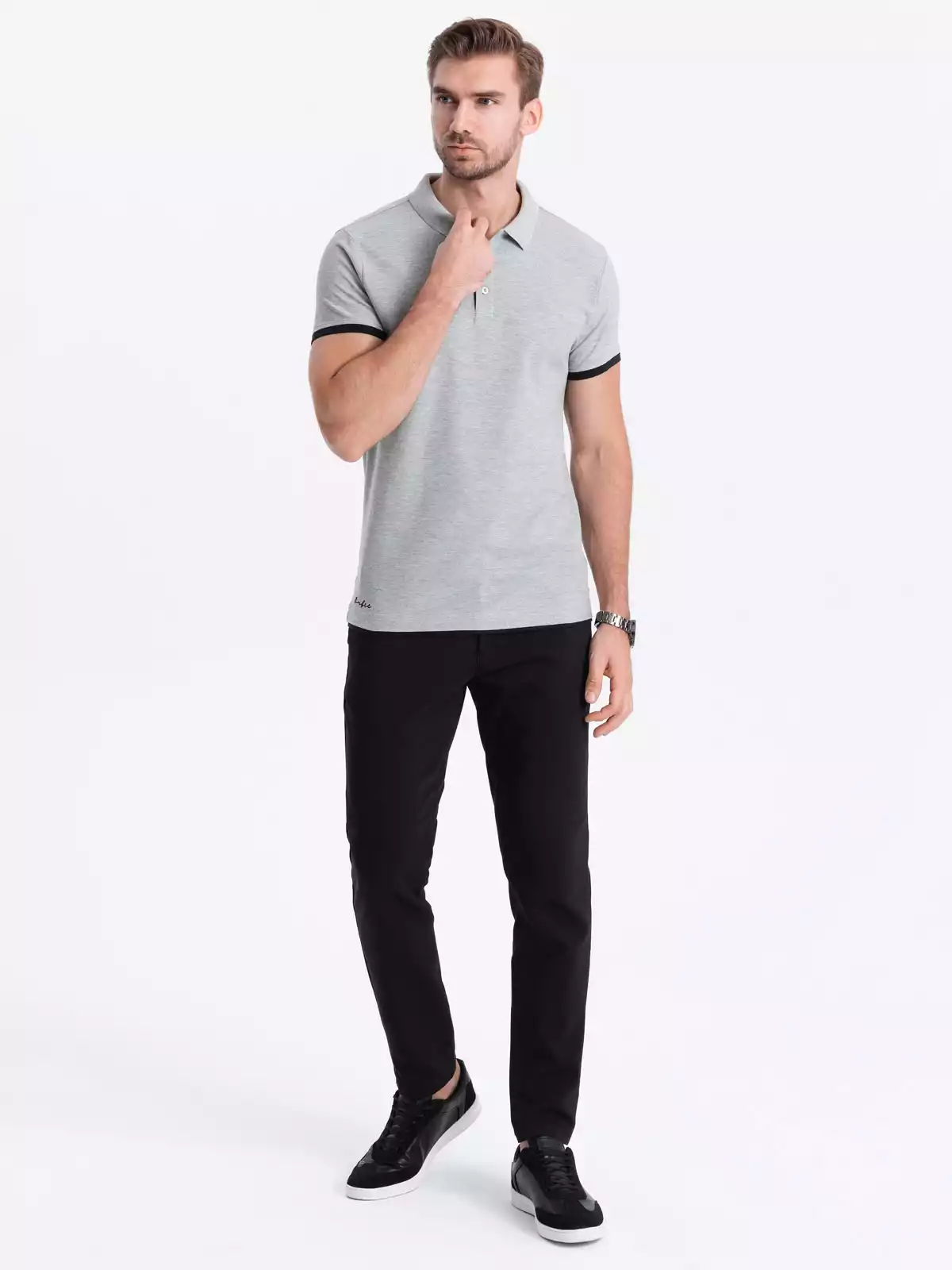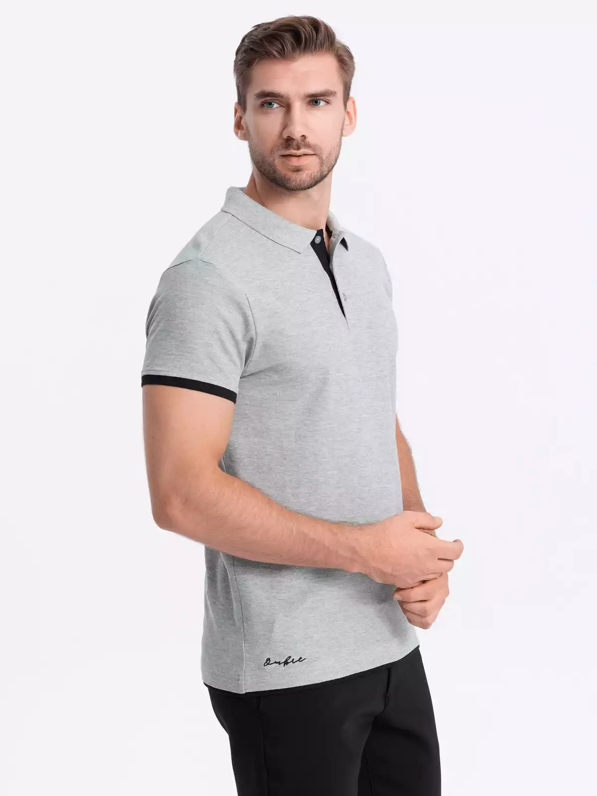 Heren poloshirt met korte mouw. De polo is gemaakt van elastische katoen, dit geeft een comfortabel draaggevoel. Het effen mannen shirt met korte mouw is perfect om te combineren met een korte heren broek of een jeans.