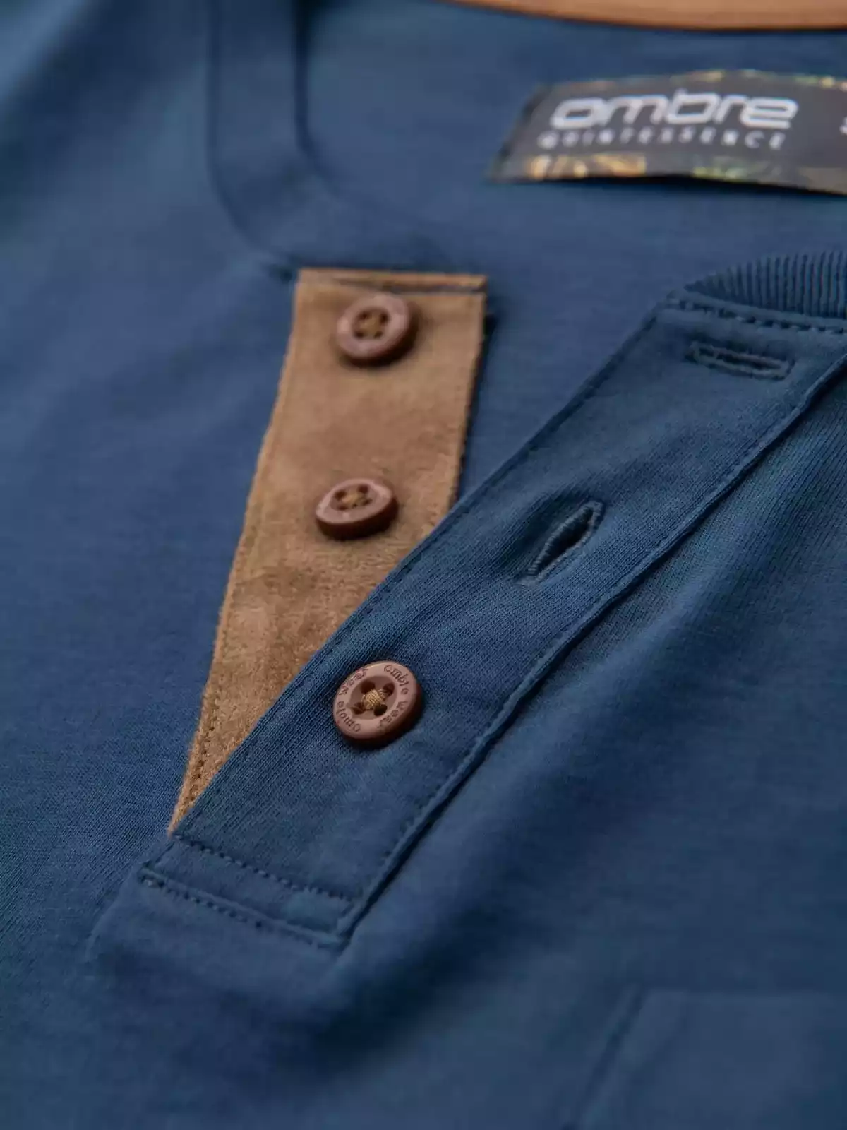 Heren Poloshirt met knoopsluiting en suède detail – Blauw