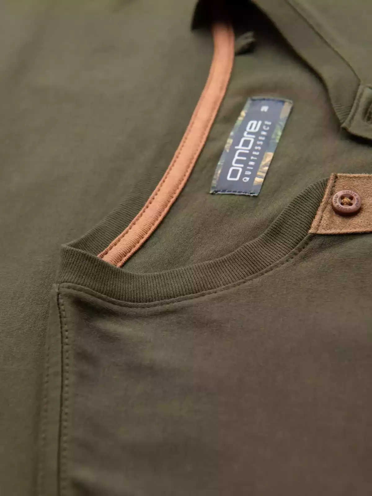 Heren Poloshirt met knoopsluiting en suède detail – Donkergroen
