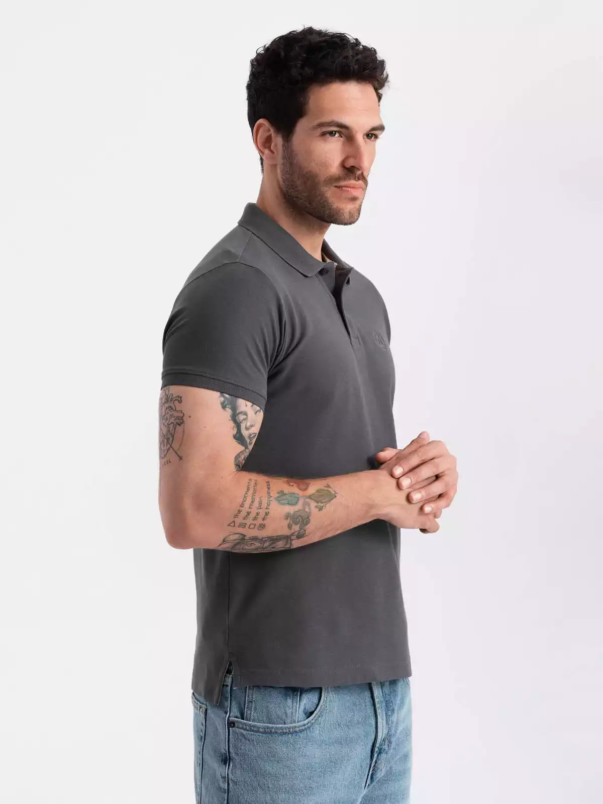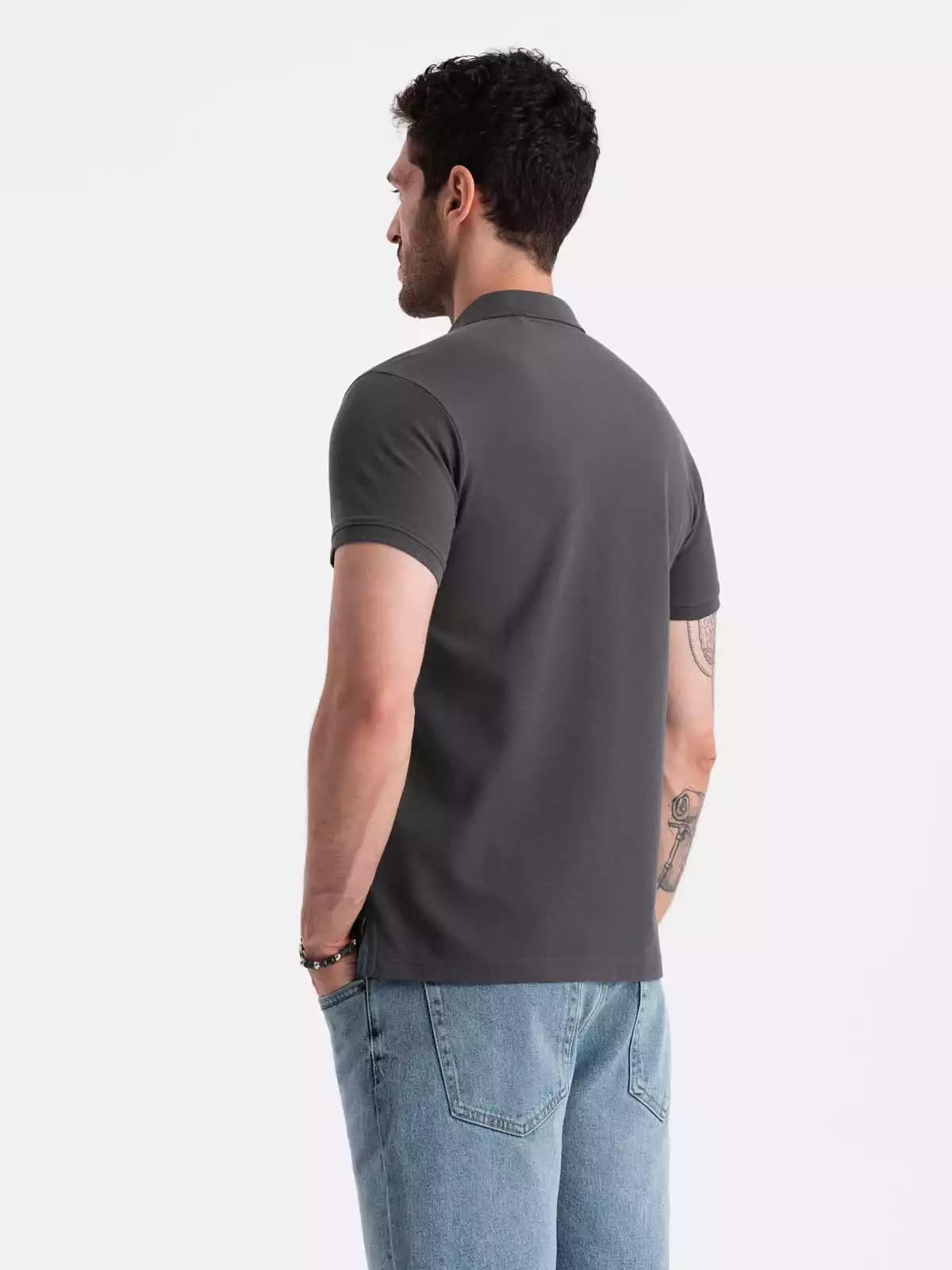Heren poloshirt met korte mouw. De polo is gemaakt van elastische katoen, dit geeft een comfortabel draaggevoel. Het effen mannen shirt met korte mouw is perfect om te combineren met een korte heren broek of een jeans.