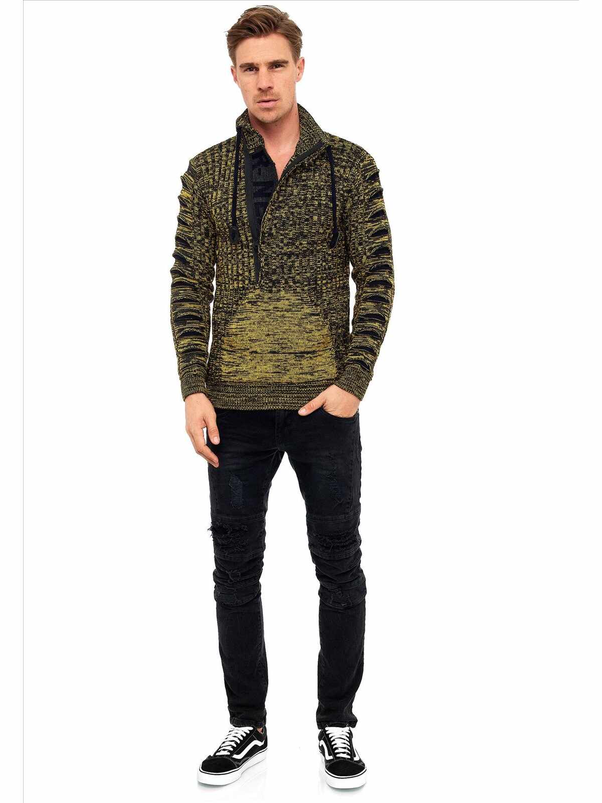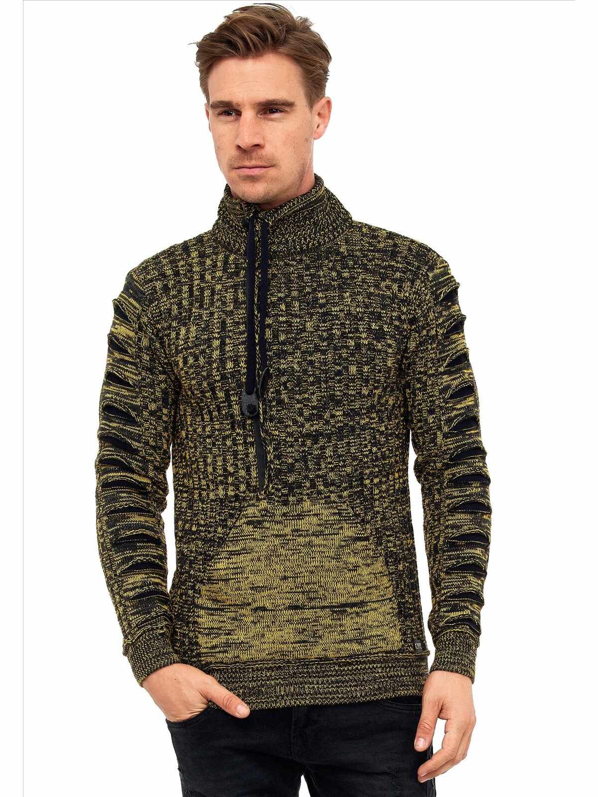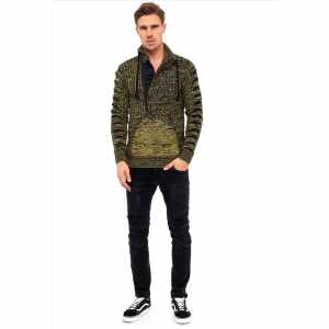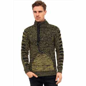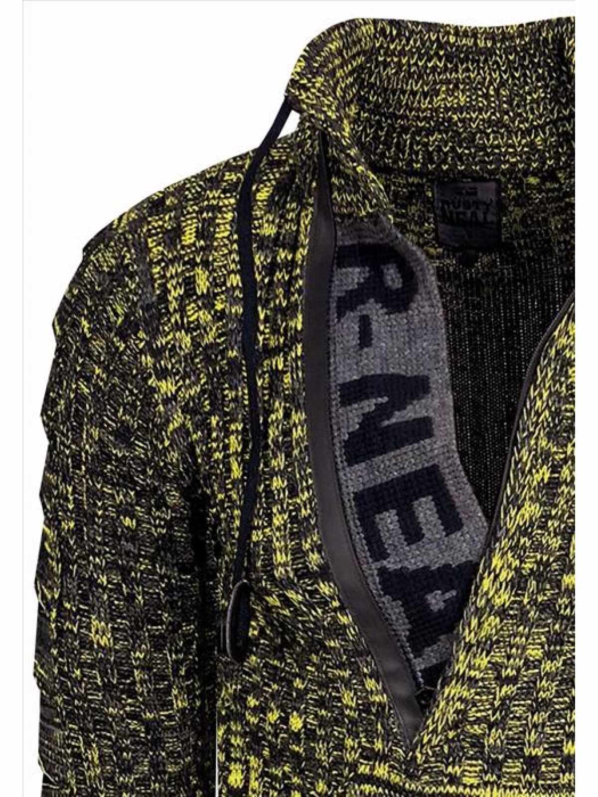 Stoere gebreide trui voor heren van het stijlvolle Italia Mode merk Rusty Neal. Deze mannen trui heeft een nette uitstraling, maar is ook zeer geschikt op de casual outfit. De heren trui is voorzien van een rits waarin het embleem van Rusty Neal zit.