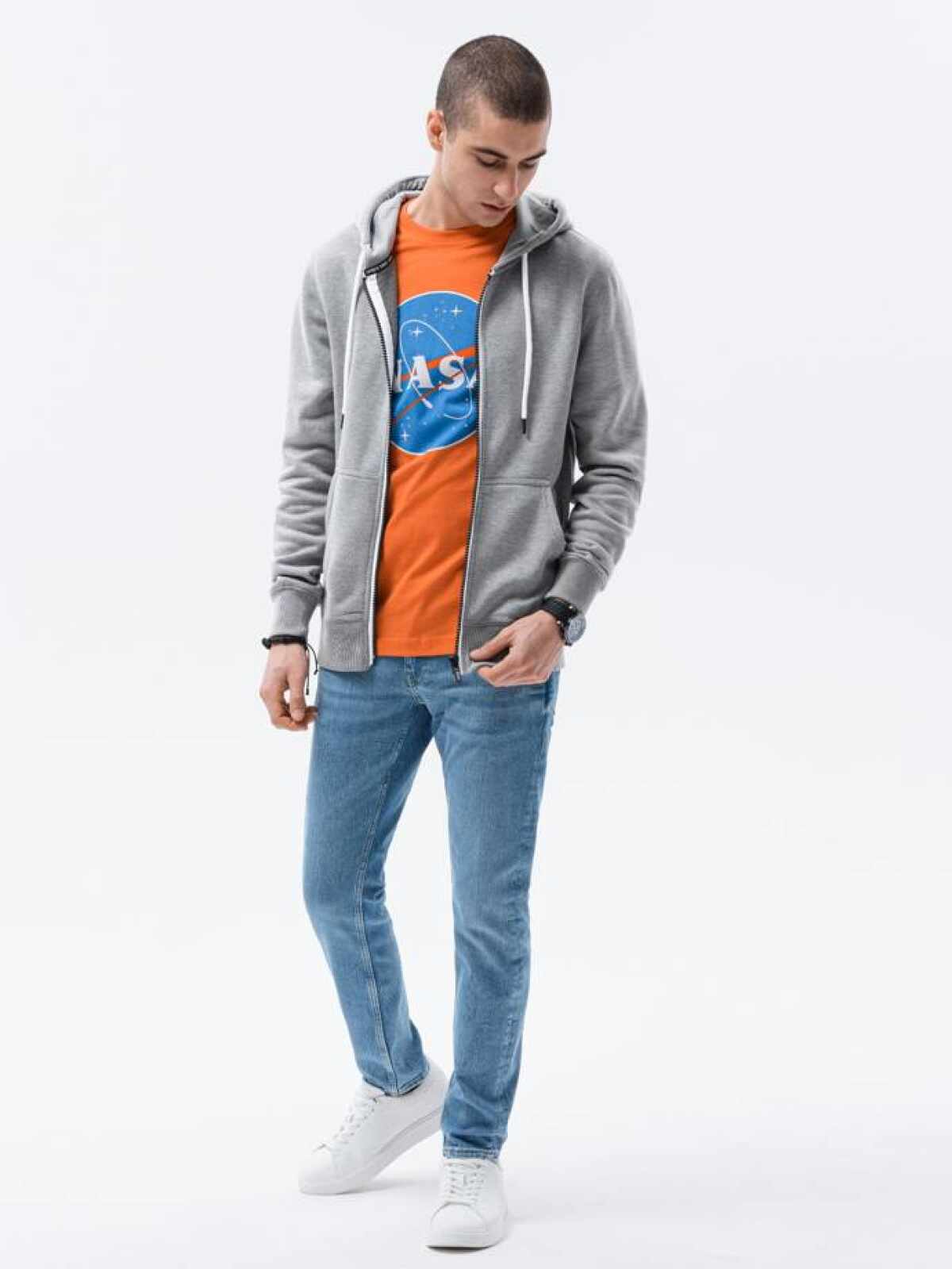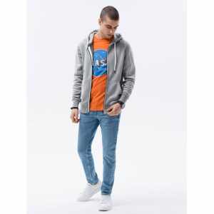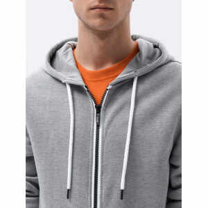 Klassiek heren vest met capuchon. Capuchon met trekkoord. Licht geïsoleerd, aangenaam om aan te raken. Ritssluiting. Twee zijzakken. Onderkant van het sweatshirt en mouwen afgewerkt met boorden. Subtiel logo-embleem. Perfect geschikt voor casual looks.