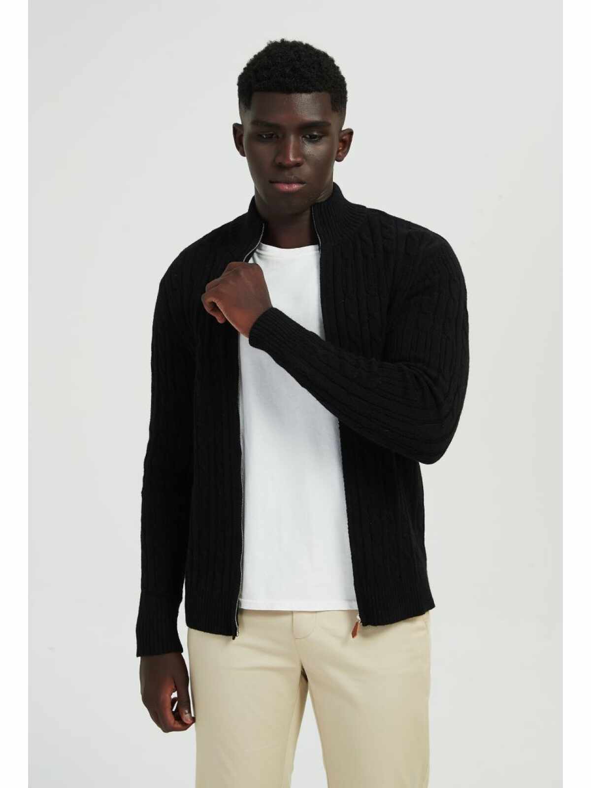 Yves Enzo - Heren Kabelvest - Zwart - Kraag - Rits - Art.nr. 6855-2